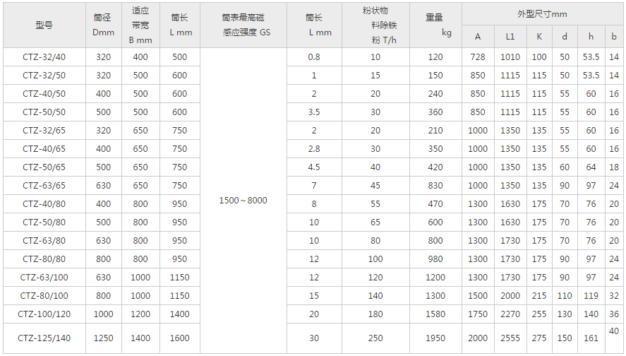 CTZ型中場(chǎng)強(qiáng)半磁滾筒(CTZ型中場(chǎng)強(qiáng)全磁滾筒結(jié)構(gòu)與RCT型參數(shù)等同),多用于對(duì)粉狀、顆粒狀、小塊狀物料的凈化處理,或?qū)﹁F質(zhì)的回收利用,對(duì)防止破碎機(jī)、研磨機(jī)、壓榨機(jī)的破壞和磨損起著可靠的保護(hù)作用。它安裝方便、吸力強(qiáng)、無(wú)能耗、連續(xù)工作、操作簡(jiǎn)單。