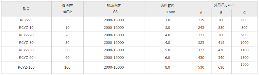 RCYZ型垂直管道式永磁除鐵器是一種以永磁材料產(chǎn)生強大磁場吸引力的節(jié)能型設備,內(nèi)部采用釹鐵硼材料組成的環(huán)狀磁系,圓錐形體,結(jié)構(gòu)合理,磁場強度高??膳c固態(tài)原料輸送設備連接,活動式門扣,清除鐵質(zhì)方便,適用于食品、面粉、陶瓷、化工、水泥、建材、石英砂等行業(yè)各類固態(tài)小顆粒和粉末狀物料中除鐵。