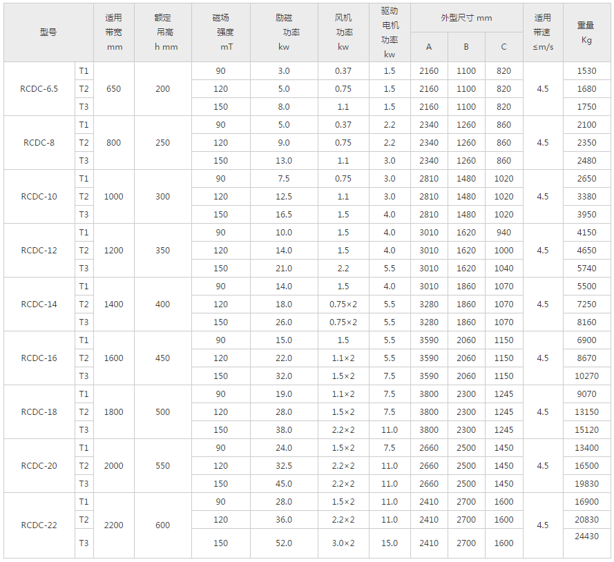 RCDC型風(fēng)冷自卸式電磁除鐵器,是在RCDA系列除鐵器的基礎(chǔ)上增加了驅(qū)動(dòng)電機(jī)、滾筒、帶刮板的卸鐵膠帶等組成的卸鐵機(jī)構(gòu)。在工作過(guò)程中卸鐵機(jī)構(gòu)自動(dòng)將卸鐵皮帶吸附的鐵磁性物質(zhì)卸到集鐵箱內(nèi),無(wú)需停電人工清理,實(shí)現(xiàn)了除鐵自動(dòng)化。