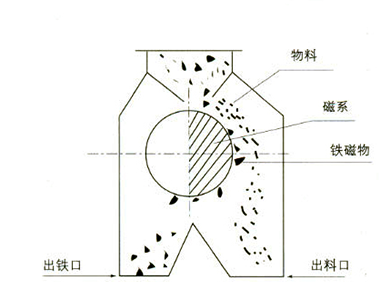 HCG干式磁分離機(jī)是一種從干性顆粒、粉料中連續(xù)自動吸鐵的磁選設(shè)備,其內(nèi)部采用獨(dú)特的磁路設(shè)計(jì),由高性能永磁王釹鐵硼材料作為磁源,磁場強(qiáng)、吸力大、除鐵率高,具有免維護(hù)、節(jié)約能源、使用安全可靠等特點(diǎn),可調(diào)整控制進(jìn)料量,適用于不同顆粒的要求。利用磁性物質(zhì)可以被永磁鐵吸引的原理,在物料流經(jīng)的滾筒內(nèi)部設(shè)計(jì)一形成較大磁場的半圓形磁系。當(dāng)物料流經(jīng)這片磁場區(qū)域時(shí),磁性礦即刻被強(qiáng)大的磁力所捕獲,吸附在半圓式磁系的滾筒吸附面上。當(dāng)磁性礦被帶到下部的無磁區(qū)域時(shí),在自重作用下掉到精礦口排出。而非磁性礦石或含鐵品位較低的礦石在重力作用下可以自由地通過磁場流到尾礦口排除。