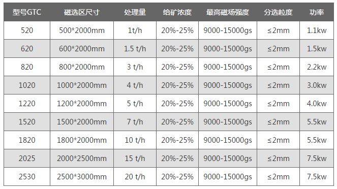GTC平板磁分離機主要適用于粒度5mm以下的弱磁性礦物的礦選及非金屬礦物的除鐵,如:云母粉、石英砂、鉀長石、霞石、螢石、硅線石、鋰輝石、高嶺土、錳礦、弱磁鐵礦、磁黃鐵礦、焙燒礦、鈦鐵礦、赤鐵礦、褐鐵礦、菱鐵礦、鈦鐵礦、鉻鐵礦、黑鎢礦、鉭鈮礦、赤泥等。也可用于煤、非金屬礦、建材等物料的除鐵作業(yè)。